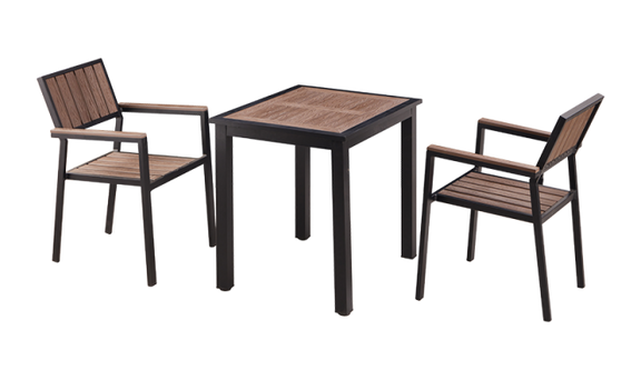 24'' x 24'' Outdoor Aluminum Table and 2 Chairs Finish Black with Imitation Teak Slats