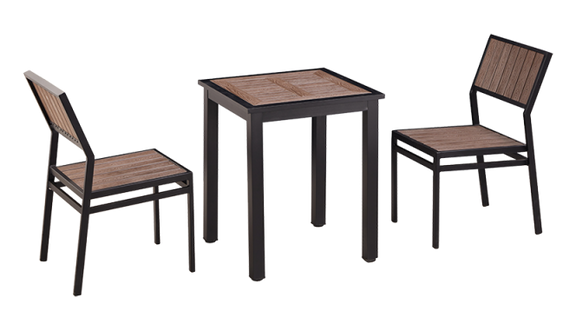24'' x 30'' Outdoor Aluminum Table and 2 Armless Chairs Finish Black with Imitation Teak Slats