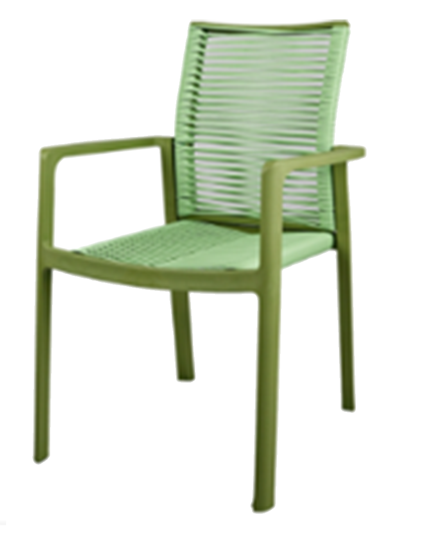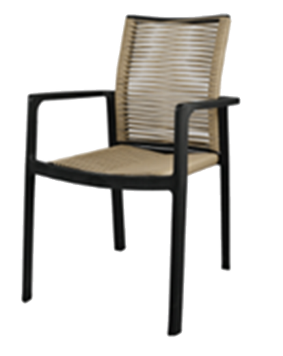 Aluminum Armchair with pp/Terslin/Rope/Rattan Seat, Finish Black/Green/White