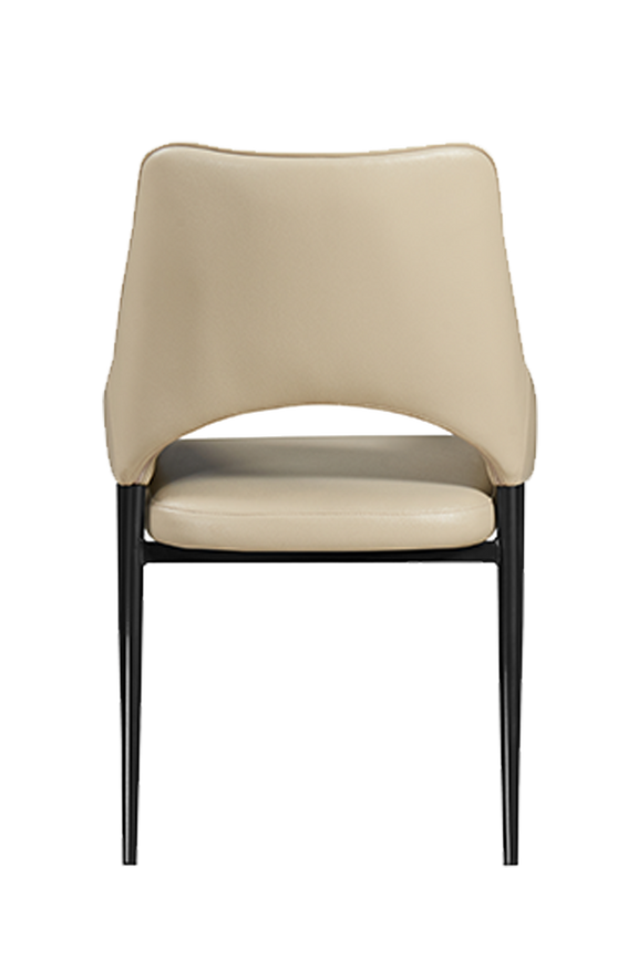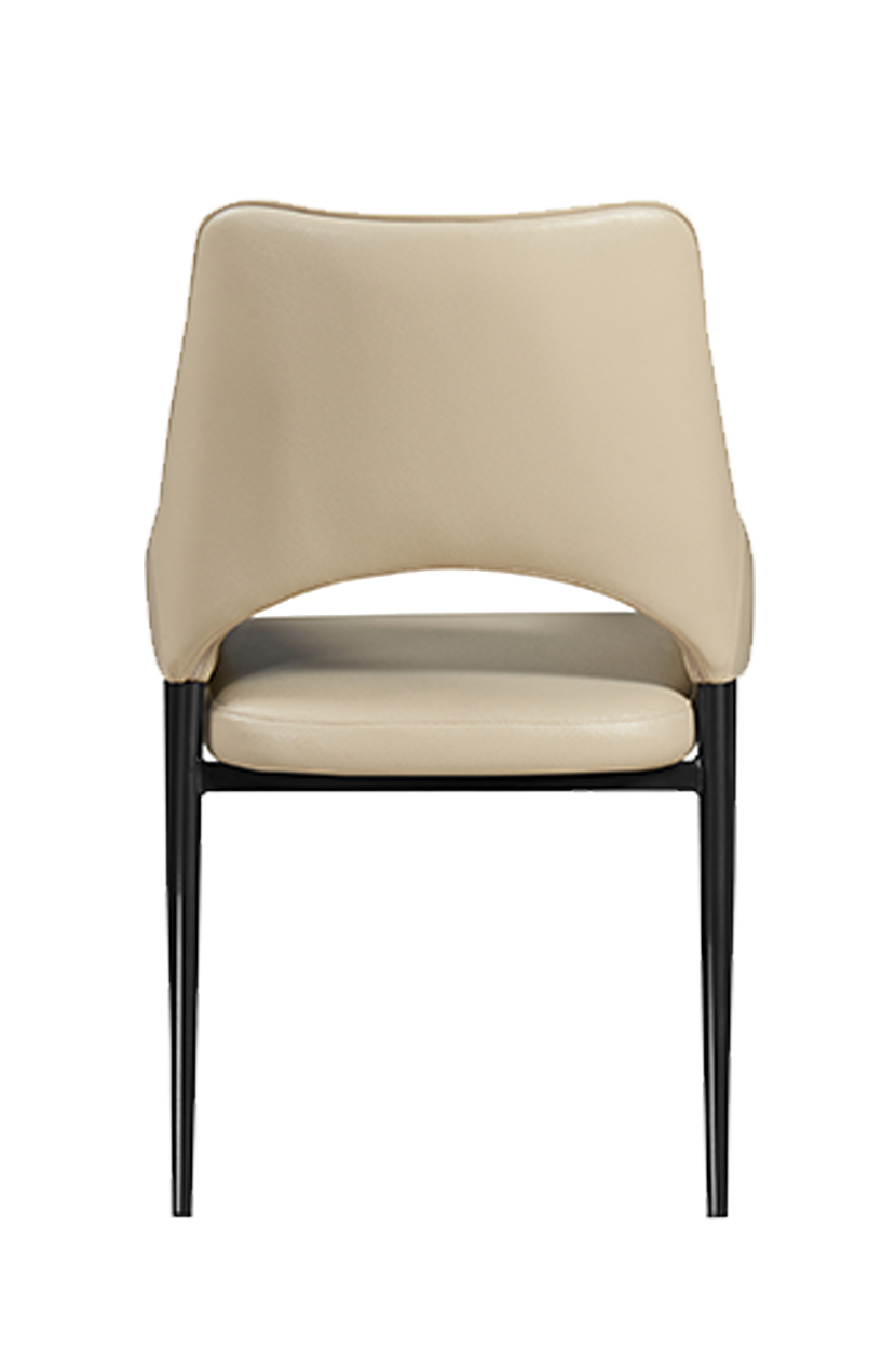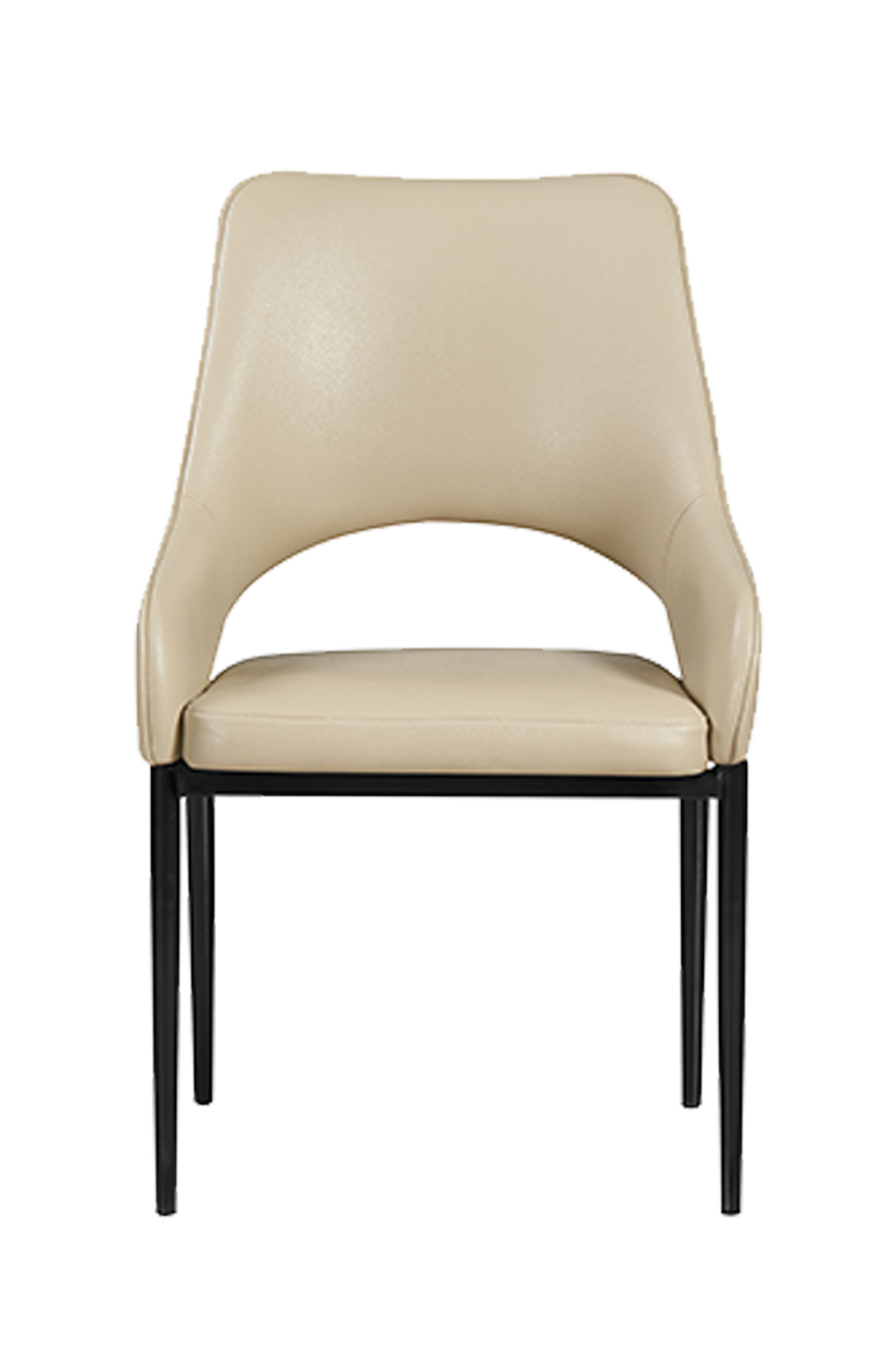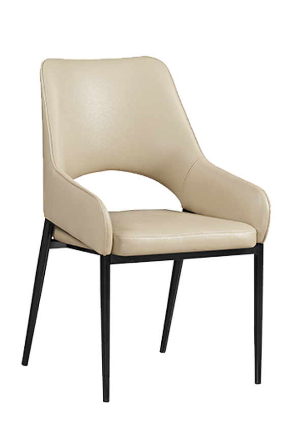 This modern versatile chair features a sleek black finish paired with a beige vinyl seat and back, combining durability with sophisticated style. Ideal for hotel dining areas, it offers both comfort and easy maintenance, making it a practical yet elegant seating solution that complements a variety of interior decors.
