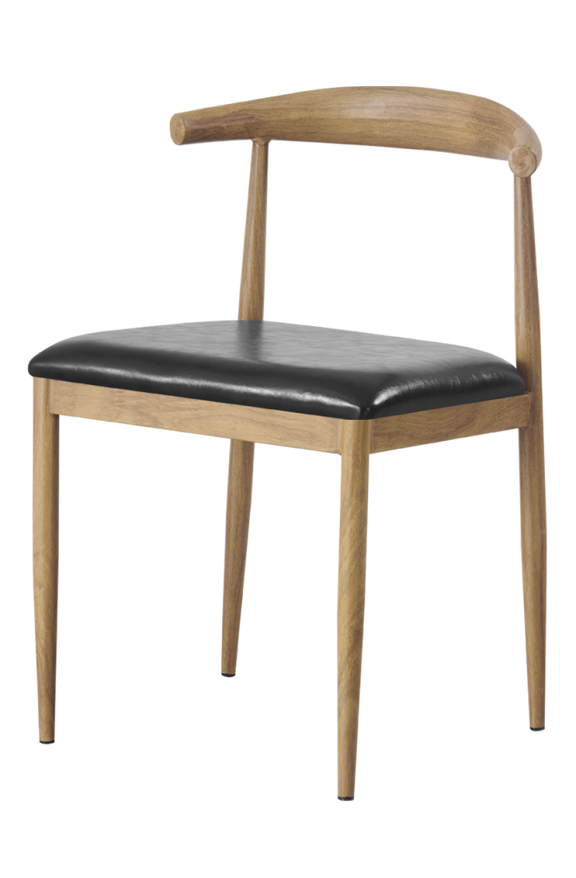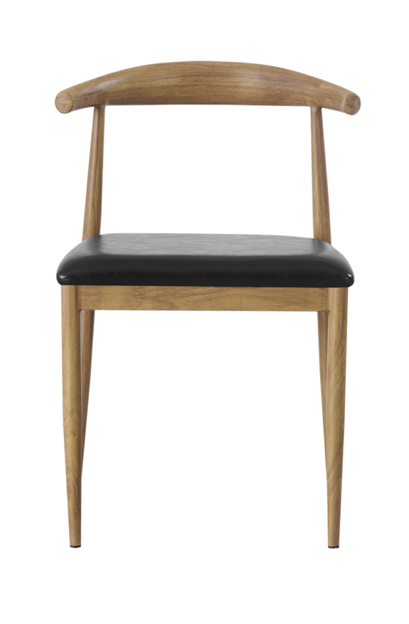 Natural-2 Wood Grain Finish Metal Chair w/. Black Vinyl Seat