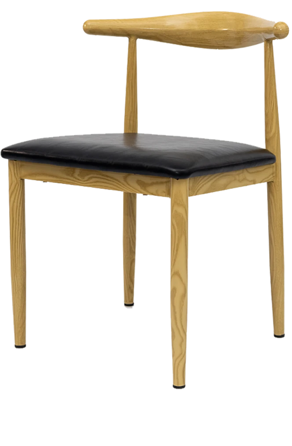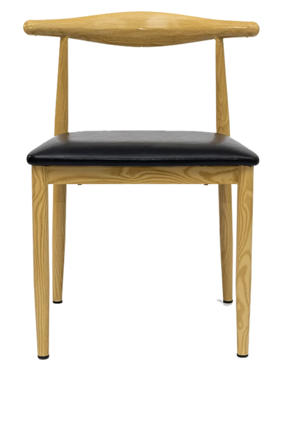 Natural Wood Grain Finish Metal Chair w/. Black Vinyl Seat