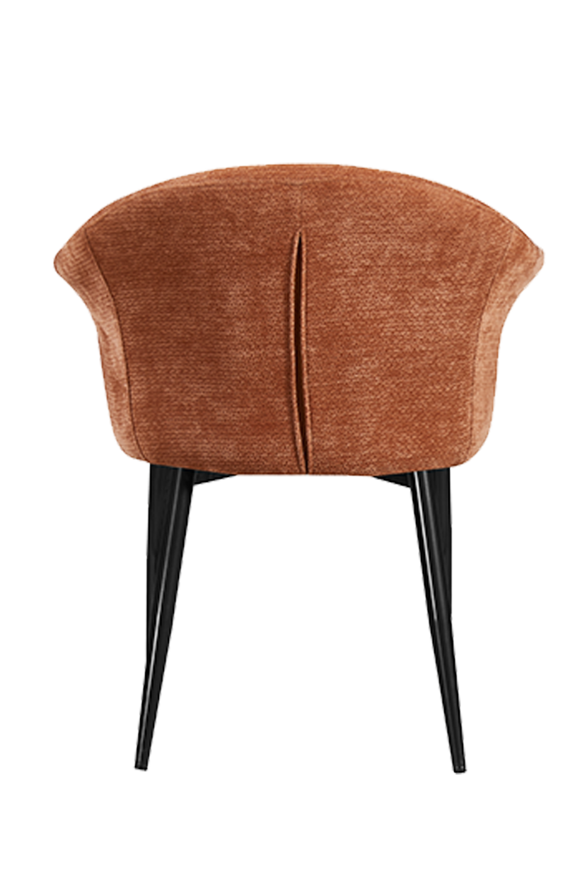 This simple and practical cream-style dining chair combines a black steel frame with a warm orange vinyl seat and backrest design, ensuring both structural sturdiness and durability while also offering comfort and ease of cleaning. Its modern style is suitable for various dining environments, enhancing the fashion sense and practicality of the space.