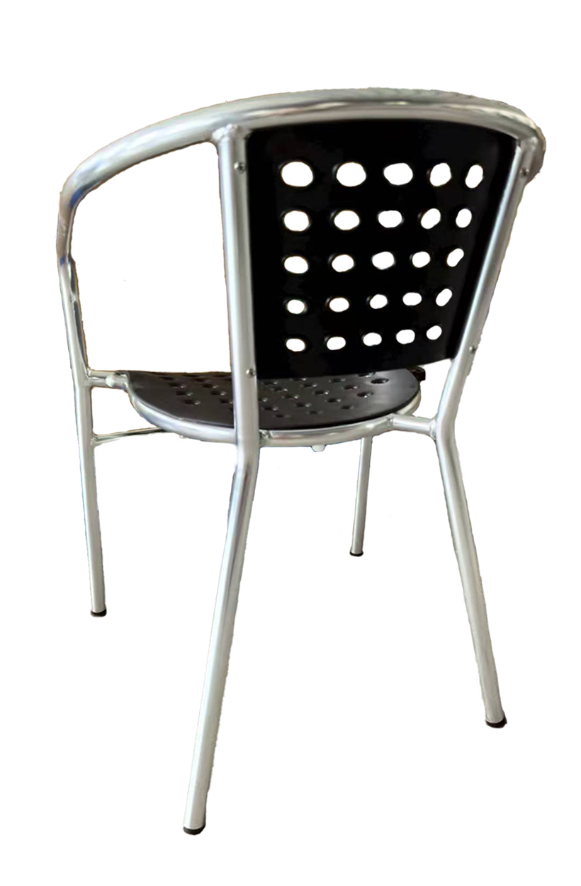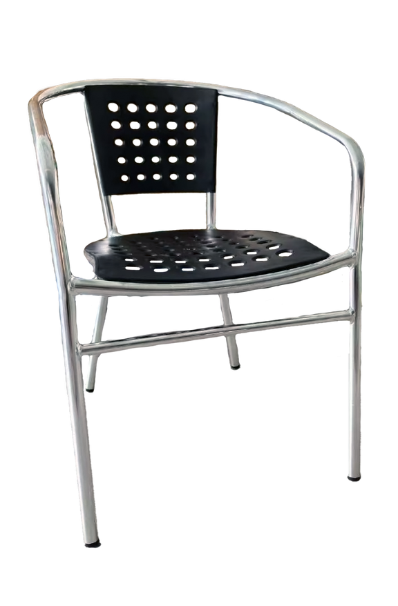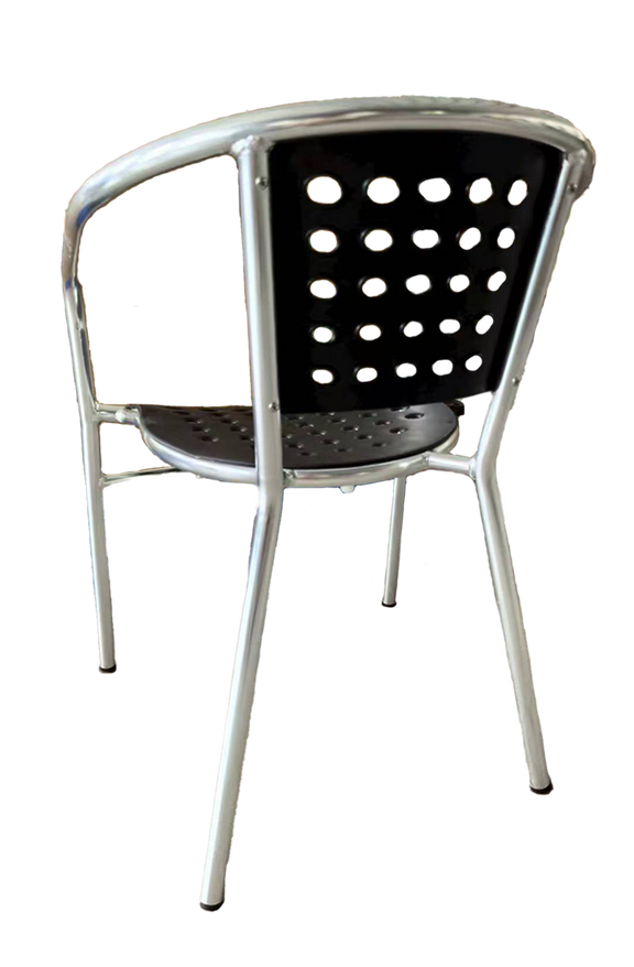 Outdoor Silver Aluminum Chair with Black Resin Seat and Back