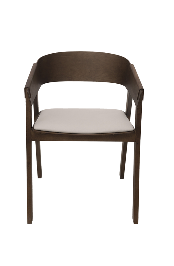 Ash wood Armchair with light Grey Vinyl Seat, Finish Walnut